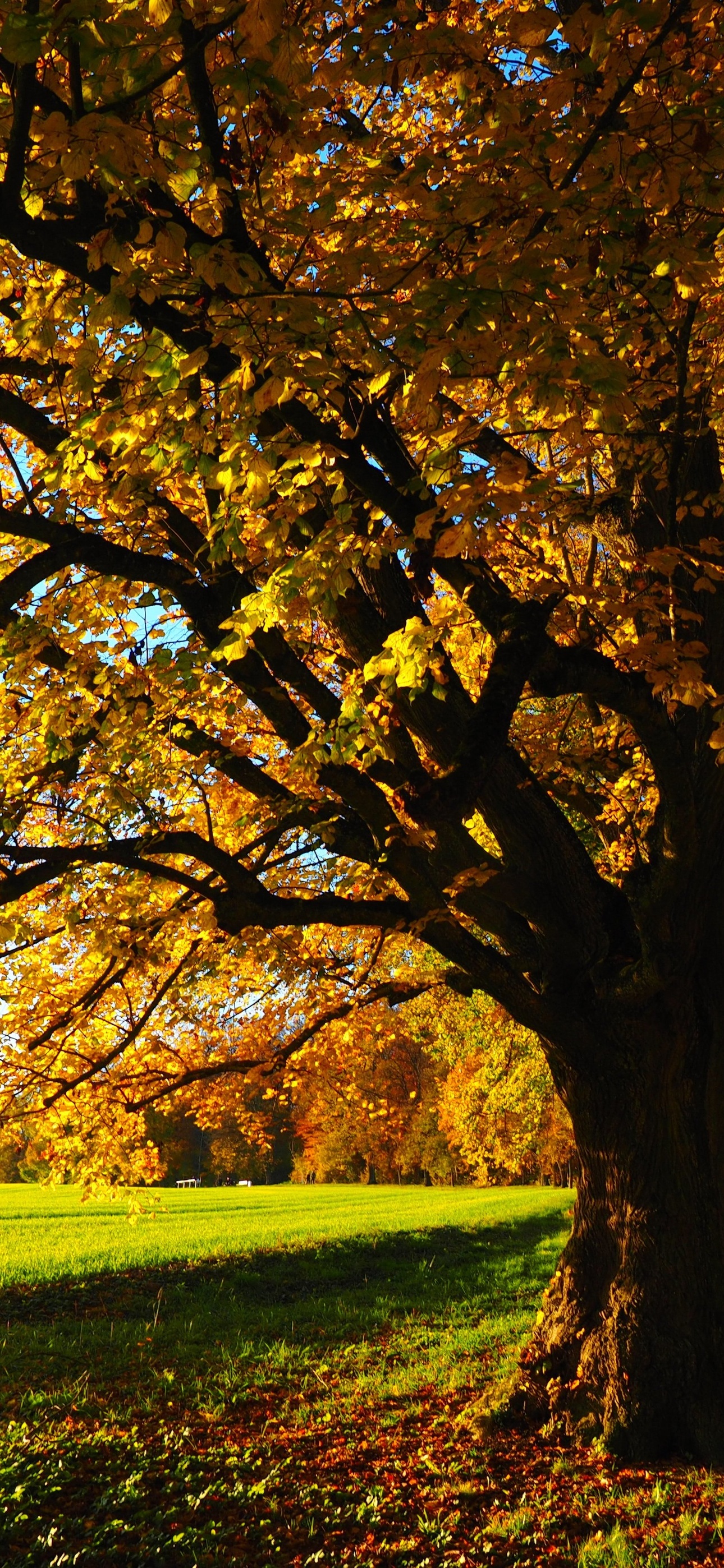Farbenfrohe Herbstblätter schmücken majestätische Bäume und verleihen der Natur eine unvergleichliche Stimmung. Dieses Hintergrundbild fängt die Magie des Herbstes ein und ist in HD sowie 4K kostenlos auf Hinterbild.com verfügbar.