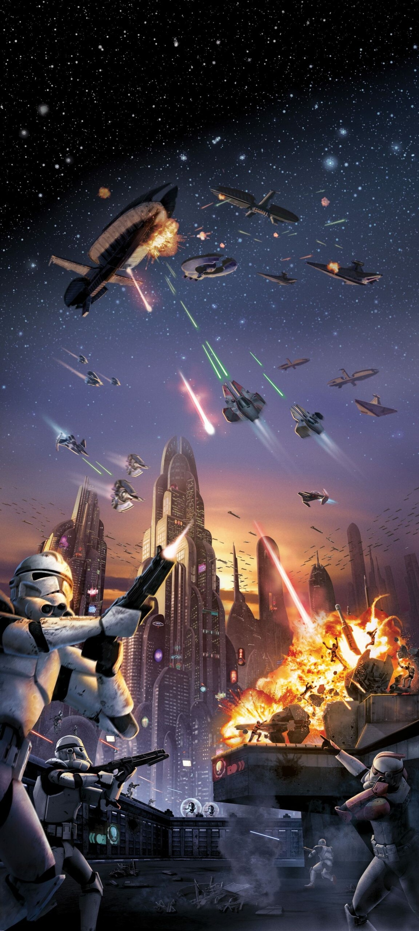 Unsere Star Wars Handy Wallpaper fangen diesen Moment ein: Laserstrahlen, Lichtblitze, Explosionen und das tiefe Schwarz des Weltraums.