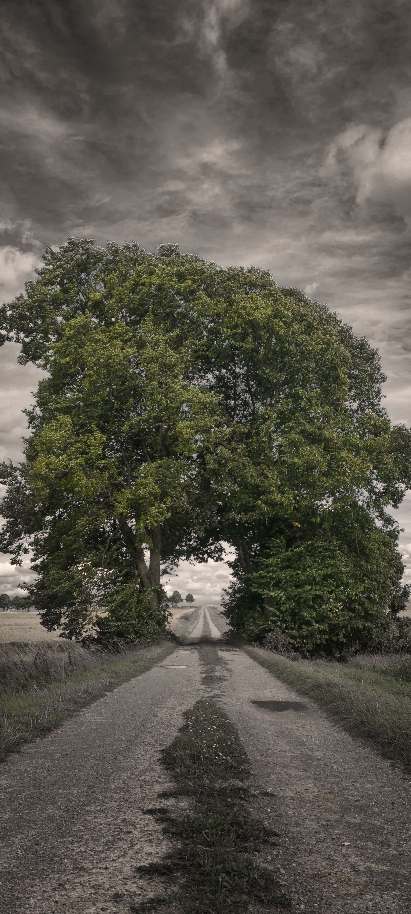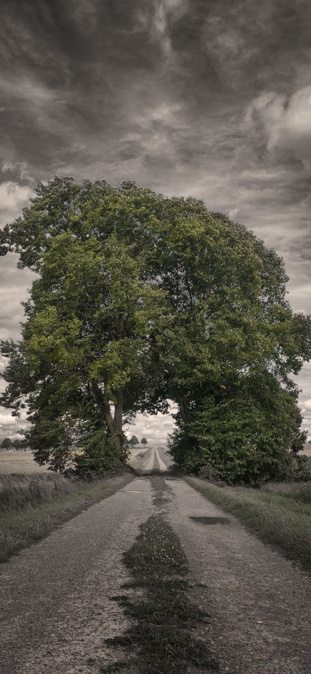 Weg, Bäume und Wolken Schlichtes iPhone Hintergrundbild in 4K kostenlos wählen sie unten die passende Auflösung für Ihr Gerät und laden Sie dieses Hintergrundbild kostenloser download.